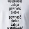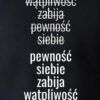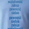 Tekst z przódu: wątpliwość zabija pewność siebie, pewność siebie zabija wątpliwość