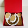 Czy świat jest możliwy bez miłości? Zestaw w jej charakterystycznych kolorach: delikatny biały komplet z 4 przedmiotów, wykonanych z elementami drewnianymi, rozgrzeje nawet tych, którzy nie mają pary, a czerwone pudełko sprawi, że serce zacznie bić szybciej z ekscytacji.